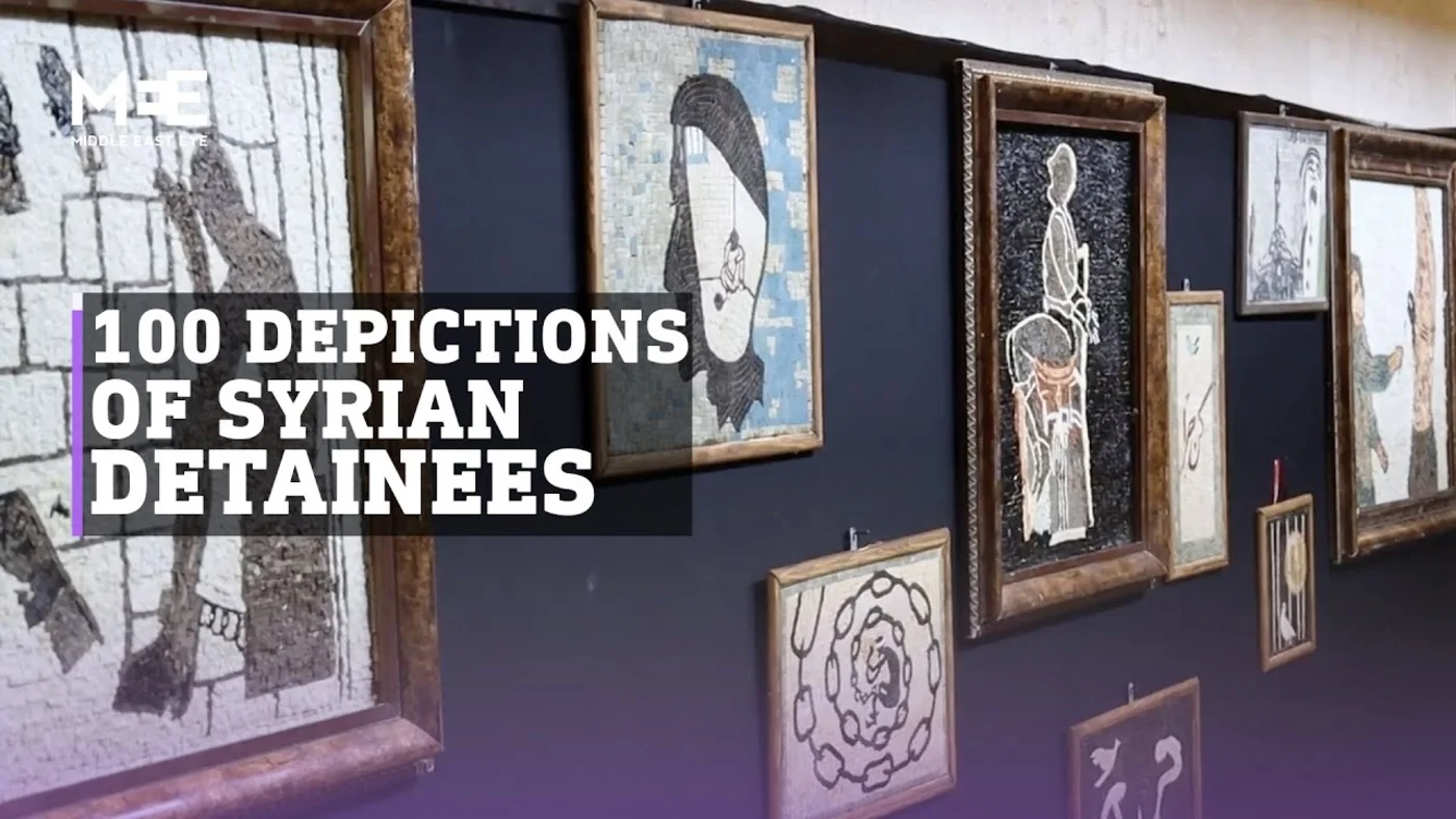 On the 11th anniversary of the Syrian revolution, 100 images featuring a mix of drawings, prints, and mosaics which depict the reality of life for Syrian detainees imprisoned by the Assad government are displayed in an exhibition in the city of Azaz, north of Aleppo.