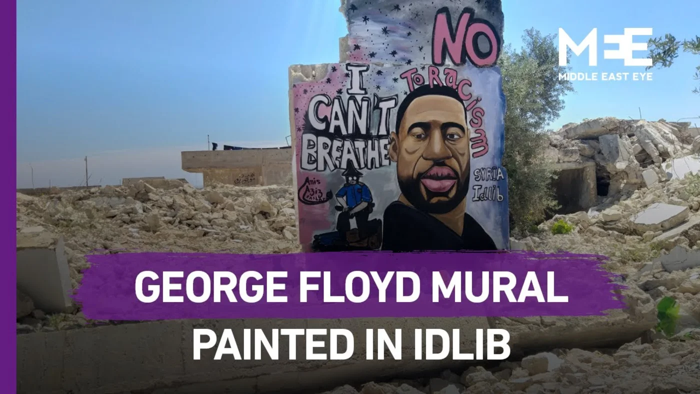 Syrian artists Aziz Asmar and Anis Hamdoun paint a mural depicting George Floyd, an unarmed African American man who died in police custody in the US