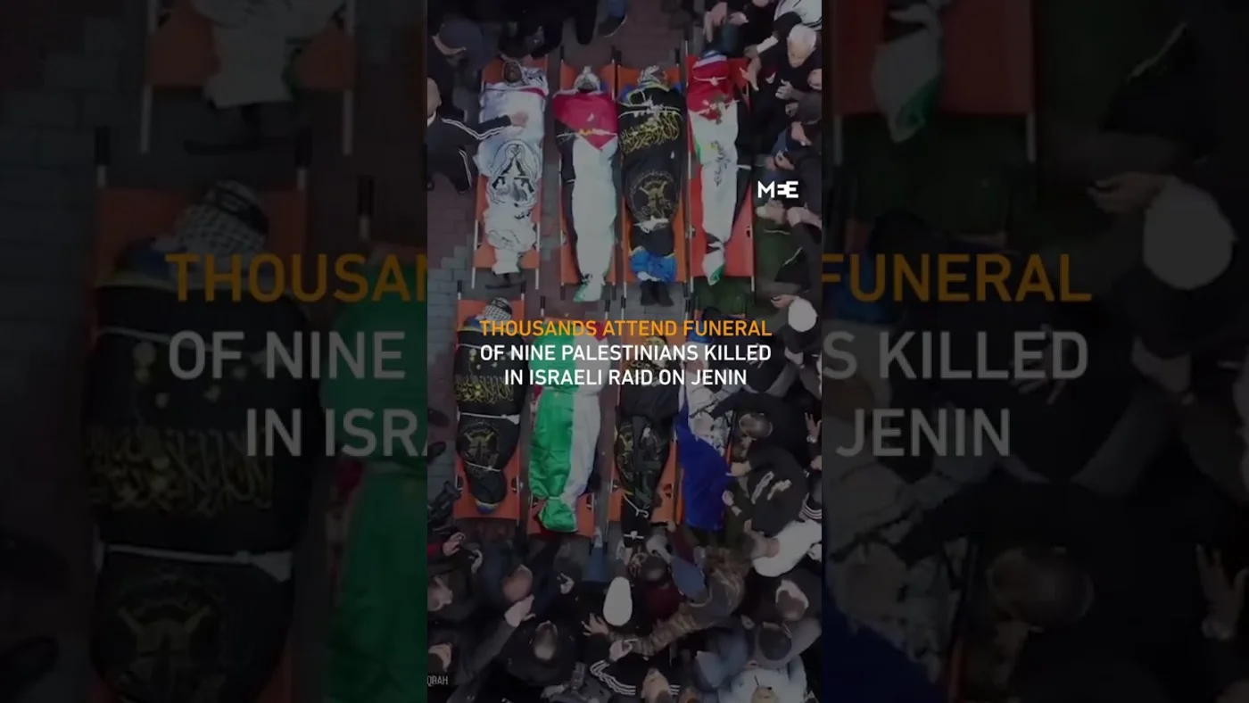 Thousands of Palestinians gathered in Jenin in the occupied West Bank to attend the funeral of nine Palestinians killed during a raid on the Jenin refugee camp on Thursday morning.