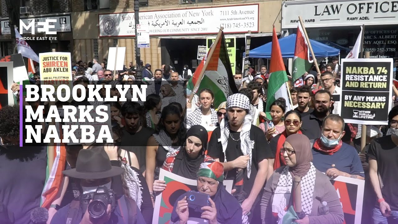 Thousands of protesters marched through Brooklyn, New York to mark the 74th anniversary of Nakba Day.