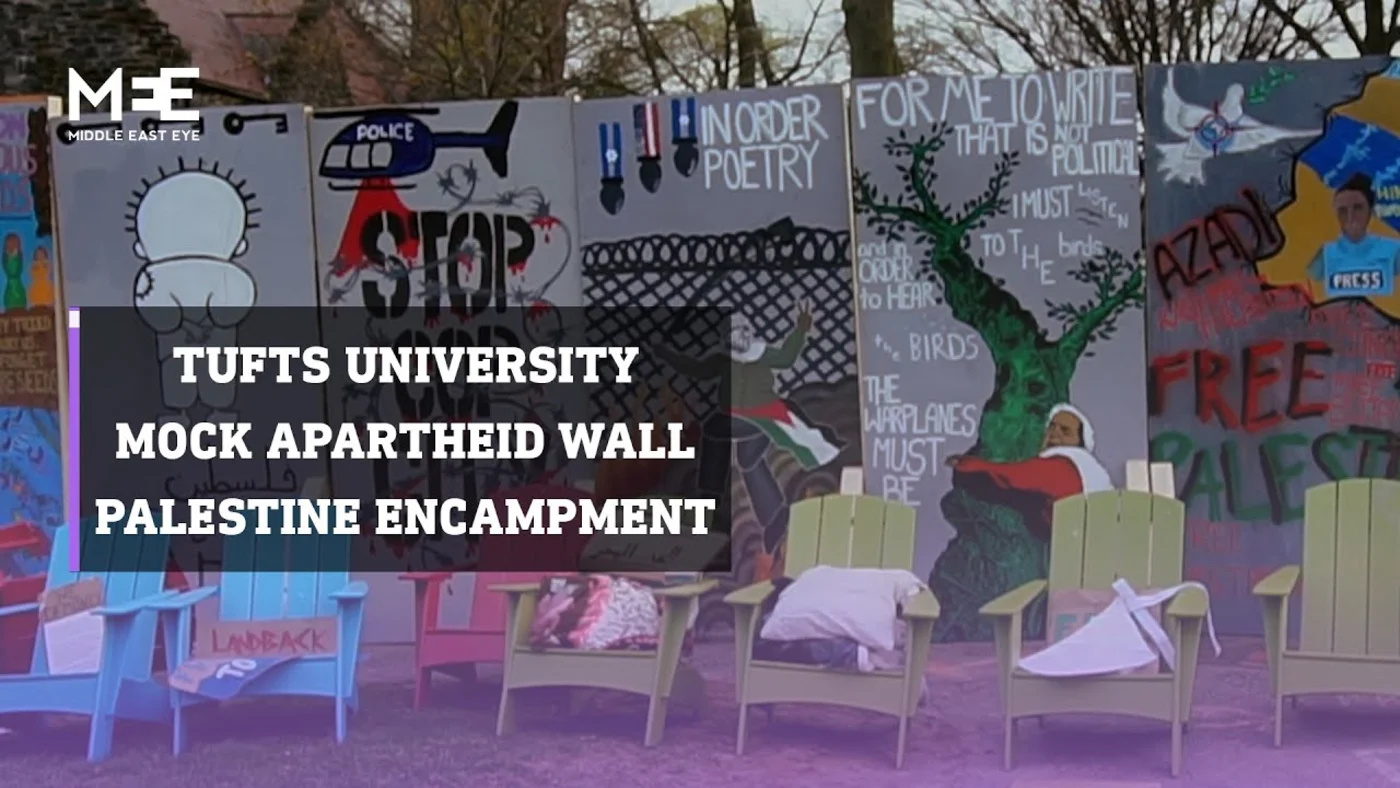 Tufts University students create mock apartheid wall in Palestine solidarity encampment