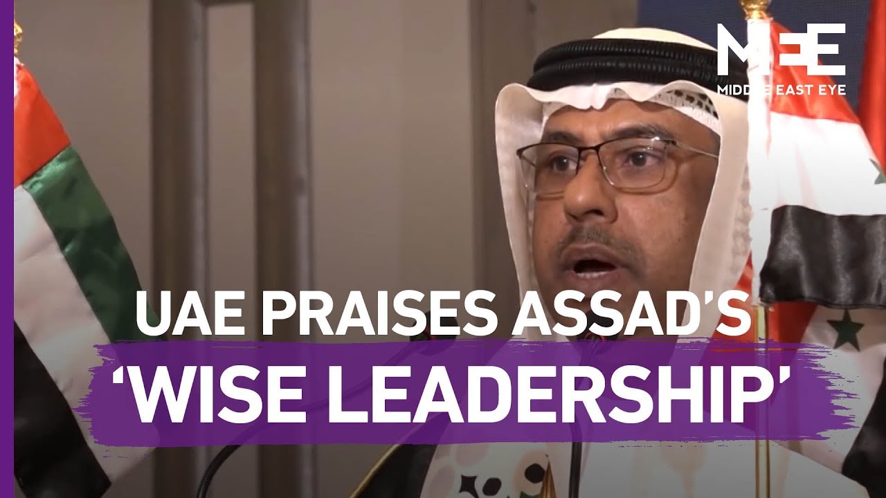 An Emirati official praised Syrian President Bashar al-Assad's 'wise leadership' during a reception event, as government air strikes hit a market in Idlib killing 13 civilians.